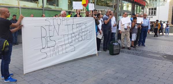 Во Франкфурте прошла акция протеста перед турецким консульством. Митингующие в своих речах говорили: «Геноцидное правительство Эрдогана совершает новую резню каждый день. Мы не должны молчать об этих преступлениях».