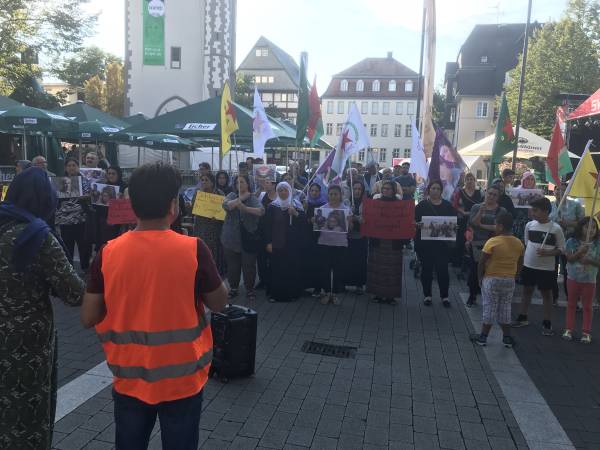 Курды в Гисене протестовали на церковной площади Вупперталь в знак протеста против все более активно продолжающихся нападений Турции на курдский народ.