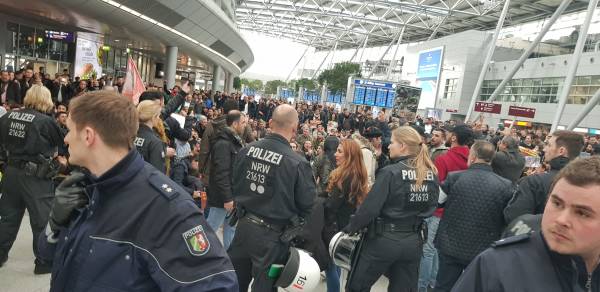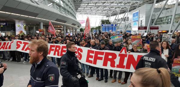 Многочисленные активисты из городов Дуйсбург, Эссен и Дюссельдорф протестовали сегодня против турецкой военной агрессии в Африне в аэропорту Дюссельдорфа в терминале C.