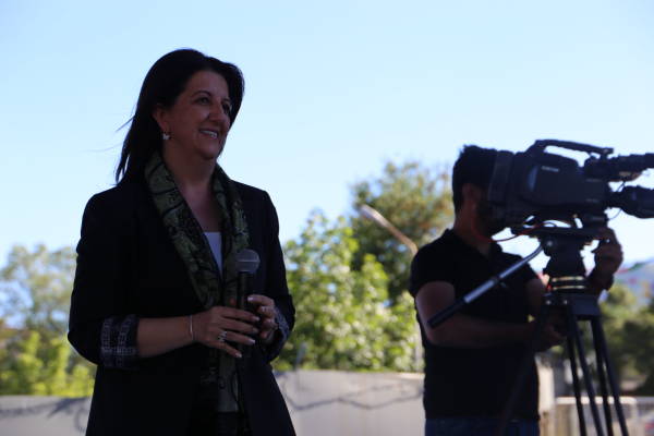 Булдан была встречена сотнями членов партии в районе Солхан. Она объехала город совместно с кандидатами в депутаты от ДПН.