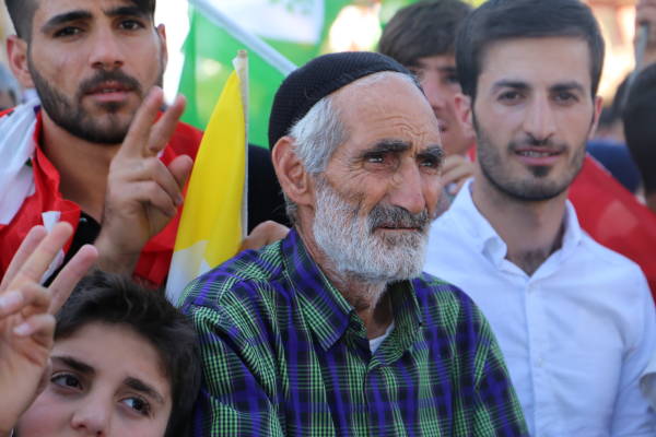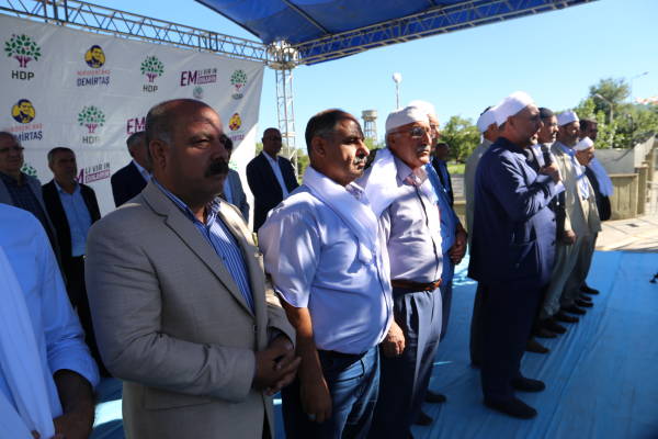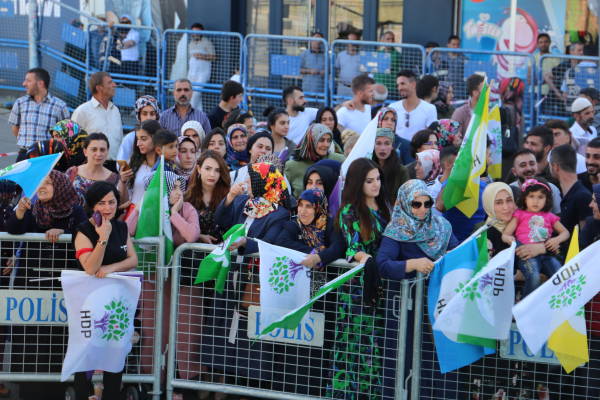 Люди также услышали слова кандидата ДПН в президенты Селахаттина Демирташа, который в данный момент находится в тюрьме Эдирне.