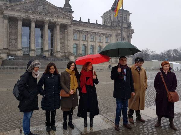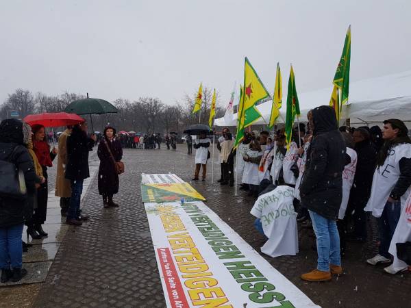 Акция проходит при поддержке Берлинского демократического курдского общественного центра, совета женщин Берлина «DEST-DAN», отделения ПДС в Берлине и Берлинского совета женщин-езидок.