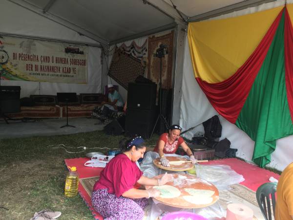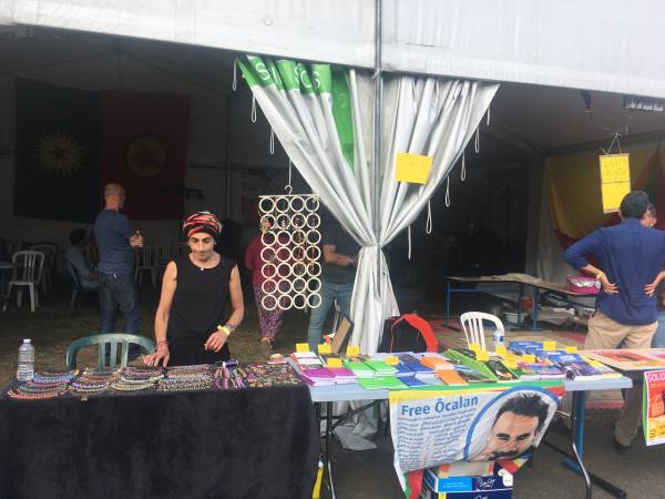 Информационная палатка ДОК-Ф предлагает брошюры и книги, подготовленные отделом внешних связей, а на стенде представлены ювелирные изделия ручной работы, изготовленные Парижским женским кооперативом. В первый день фестиваля, в пятницу, артисты TEV-ÇAND познакомили участников с курдской музыкой.