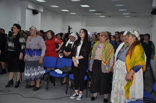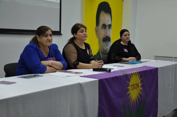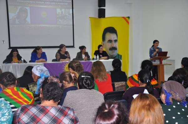 Конференция началась с минуты молчания в память погибших бойцов из сил Курдской освободительной борьбы. Мероприятие открыла председательница Международного Движения курдских женщин Джульетта Арам.