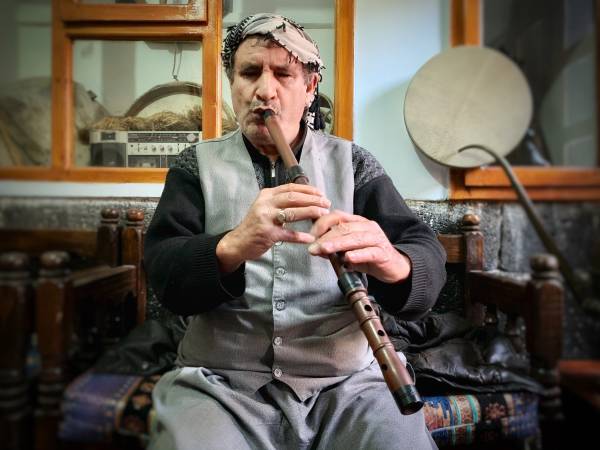 Человек, который дает кавалу звук и жизнь, — это старый «дядя» по имени Али Укун. Дядя Али слеп и дает жизнь эмоциям, сидя в своей местной одежде и черно-белой кефии.