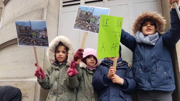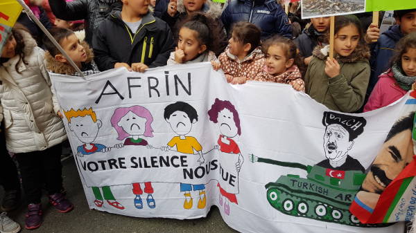 Во второй половине дня во вторник сотни семей прошли к отделению ЮНИСЕФ в Париже. Держа плакаты с надписью «ваше молчание убивает нас», дети скандировали: «Мы все дети Африна» и «Эрдоган — убийца».