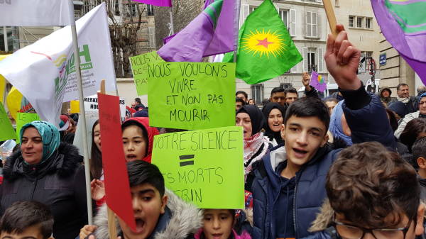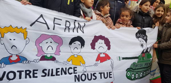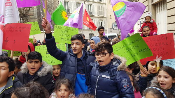 Сотни курдских учащихся бойкотируют школы в Париже и других французских городах. Ответив на призыв Демократического курдского Совета Франции, Курдское женское движение и Женская платформа за Африн, а так же сотни курдских семей приняли решение не отправлять своих детей в школы. Таким способом они хотят привлечь внимание общества к убийствам детей в кантоне Африн в ходе геноцида, организованного турецкой армией и ее союзниками — ИГИЛ и ан-Нусрой (обе организации запрещены в России).