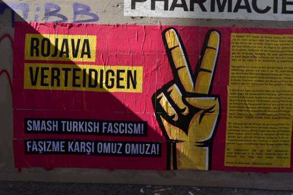 На плакатах демонстрантов было написано: «Оккупанты, убирайтесь с наших земель», «Нет войне, нет оккупации», «Плечом к плечу против фашизма» и «Уберите свои грязные руки от женщин». С другой стороны, интернациональная молодежь из Турции, Курдистана и Швейцарии провела уличную кампанию в знак протеста против вторжения Турции в Рожаву. Демонстранты закрыли дорогу для движения в Дрейросенбрюке, где они провели митинг.