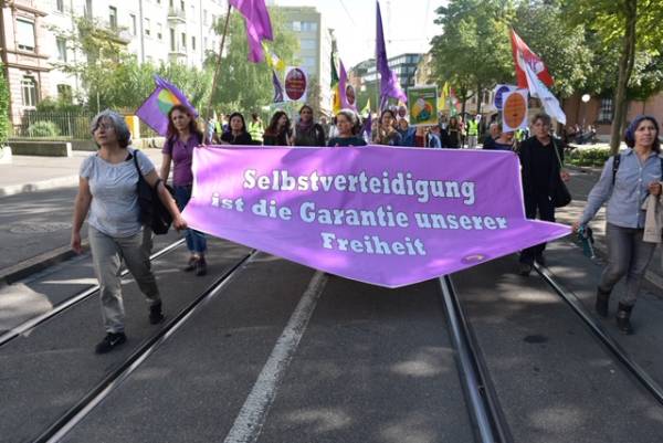 По призыву Швейцарского союза курдских женщин (YJK-S) и комитета Рожавы в Базеле прошла демонстрация в Базеле. Сотни людей собрались на площади Клараматте и выразили протест патриархату и оккупационному менталитету турецкого государства,