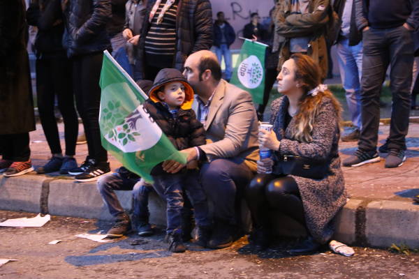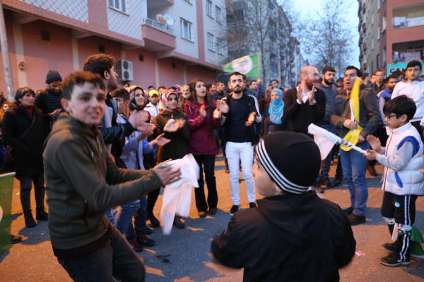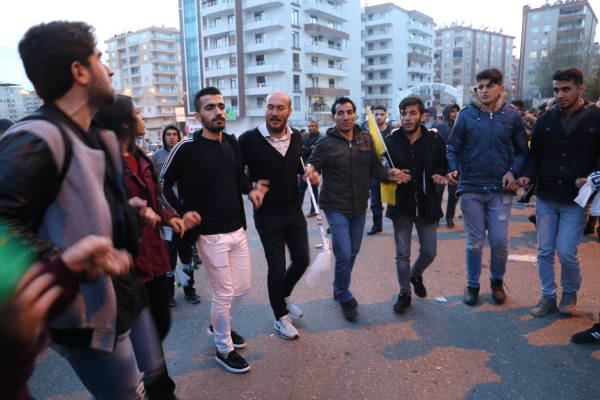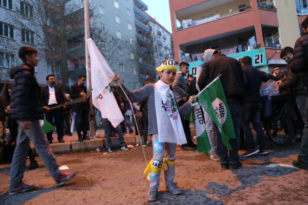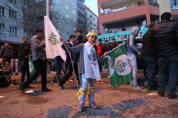 Голосование в Турции закончились. Когда начался подсчет голосов, люди начали собираться возле офисов ДПН, чтобы следить за результатами выборов по мере их появления. Они собрались перед зданием ДПН в Амеде, скандируя «Мы победим!» и «Амед наш!».