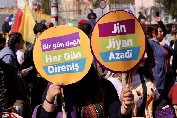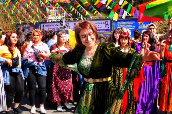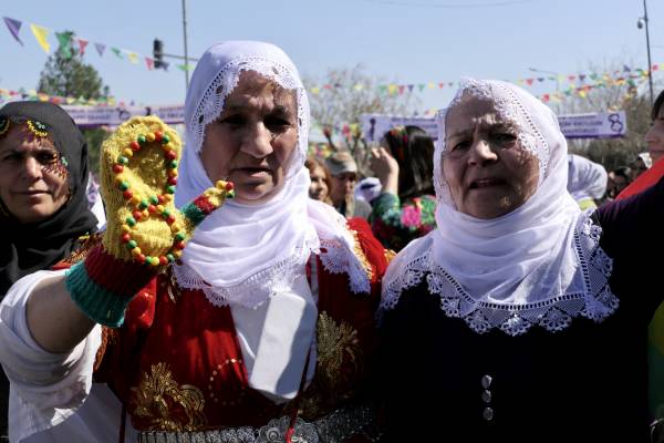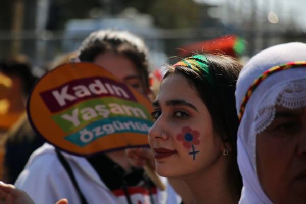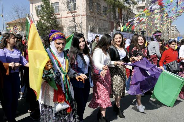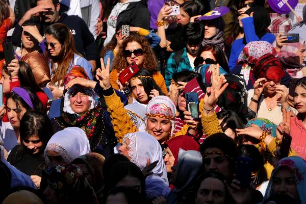 Движение свободных женщин (ДСЖ)и Женское собрание ДПН отметили 8 марта Международный женский день в этом году под лозунгом «Мы организуем сопротивление, мы идем к свободе». Вчера на привокзальной площади Амеда собрались тысячи женщин, размахивая желтыми, красными, зелеными, фиолетовыми и белыми флагами. Вот некоторые снимки, сделанные ANF на митинге в Амеде, где женщины в традиционной одежде заполнили площадь цветами и своей решительностью.