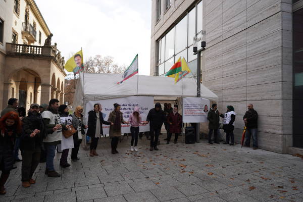 Акция проводится в знак солидарности с голодовкой, начатой месяц назад в тюрьме Амеда депутатом от Хаккари Лейлой Гювен, которая требует положить конец режиму изоляции, навязанному курдского национальному лидеру Абдулле Оджалану. На третий день голодовки активисты в Штутгарте зачитали пресс-релиз для прессы. После пресс-релиза была установлена палатка, и новая группа из восьми человек начала голодовку. Один из первых участников голодовки Пембуша Озмен заявил, что хочет продолжить акцию и присоединиться к новым активистам. Многие люди пришли сюда, чтобы выразить свою солидарность с голодающими. Голодовка проводится на улице в течение дня и продолжается в Центре демократического общества по вечерам.