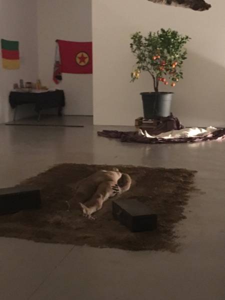 Инсталляция-спектакль под названием «Смена состояния», по словам самой художницы, родилась в результате анализа двух точек в пространстве: Макро Асило в Риме – неприкосновенное пространство, где создается свобода, и Асило в Кобани – место, полное человечности, подавленных голосов, страха и надежды.