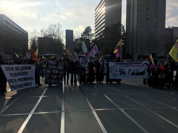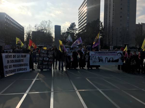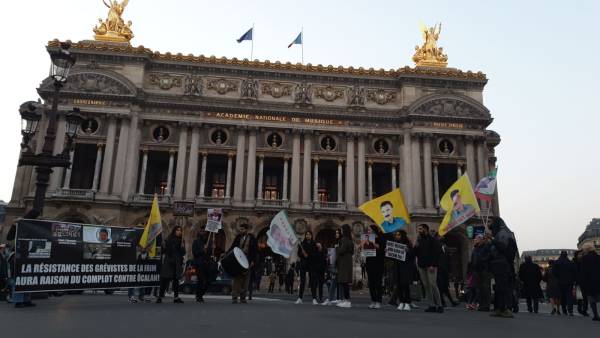 Представители Движения в Париже провели протестную акцию перед зданием французской оперы. Они также принесли фотографии голодающих и развернули баннер с лозунгом «Свободу Оджалану».