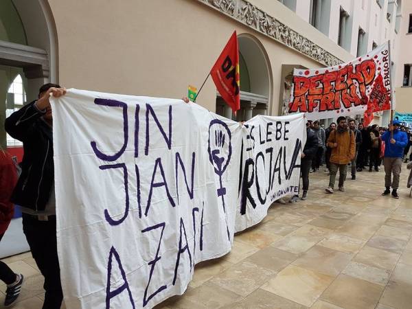 Демонстранты подчеркнули, что нападение на Африн является атакой на будущее всех народов мира, поскольку социальный проект Рожавы является демократической моделью глобального значения.