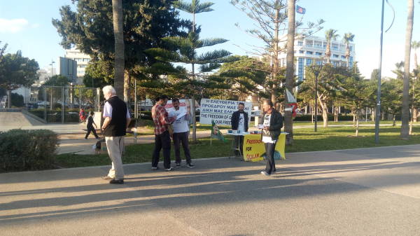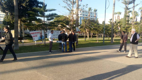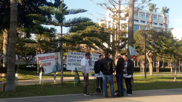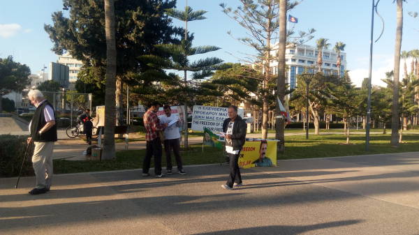 В Лимасоле кипрские активисты раздают листовки с разъяснением ситуации по поводу режима изоляции, навязанного лидеру курдского