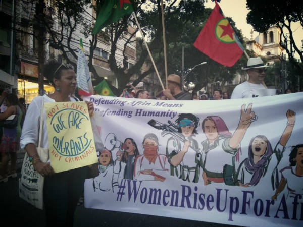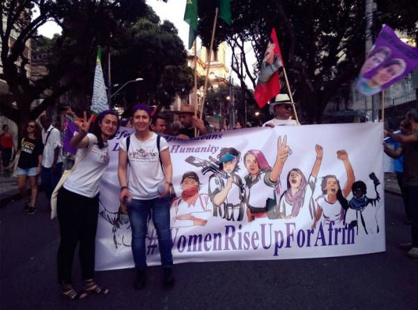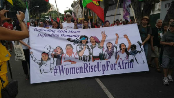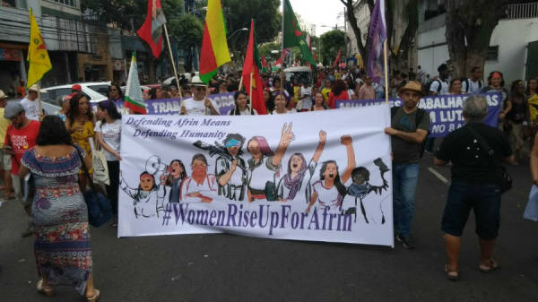 ВСФ начался с массового шествия с площади Кампо Гранде до площади Кастро Алвеса, известной как Народная площадь, где протестующие подняли флаги курдского сопротивления и были развернуты плакаты с призывом остановить турецкое вторжение в курдский кантон Афринна севере Сирии.