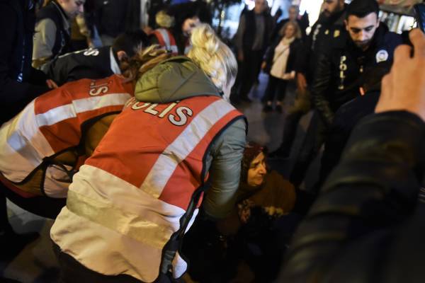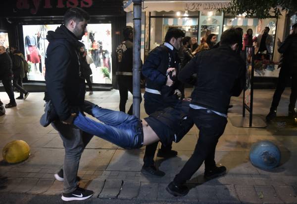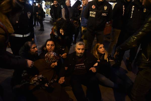 Во время осады района полиция помешала проведению демонстрации, сославшись на запрет действий губернатора района Кадыкёя.