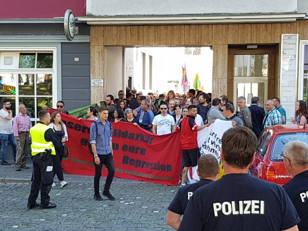 Сопредседатель ДКО-Г Тахир Кочар обратил внимание на то, что многие курды бежали в Германию из-за того, на родине они были лишены своих прав и подвергались преследованию. «Но теперь здесь происходит то же самое, что заставило этих людей покинуть свою родину», — сказал Кочар. – «Германия должна положить конец этим репрессиям и изменить свою политику в отношении курдов. Германия должна сыграть свою роль в решении курдского вопроса путем диалога».