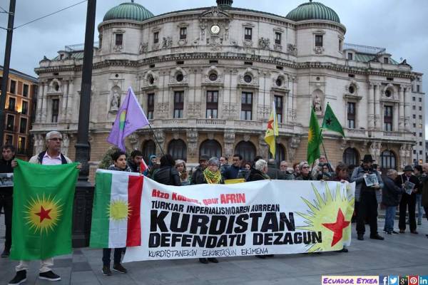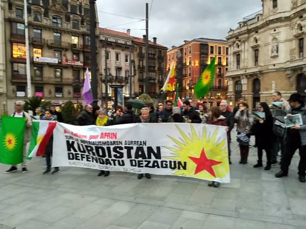 Протест был организованн курдской платформой «Kurdistanekin Elkartasun Ekimena» в Испании, чтобы привлечь внимание общественности к ситуации в последние дни в Африне. Недавно джихадисты и турецкие силовики окружили город Африн. Напомним, что 20 января турецкая армия, вторая по мощи армия НАТО, проводит военную операцию «Оливковая ветвь», которая заключается в применении тактики «выжженной земли», с убийством и захватом в заложники местных жителей, уничтожением гражданской инфраструктуры и разрушением жилых районов автономного курдского кантона Африн. Нет сомнений, что сейчас сотни тысяч жителей находятся в опасности массового уничтожения. При этом мировая общественность всё еще пассивна.
