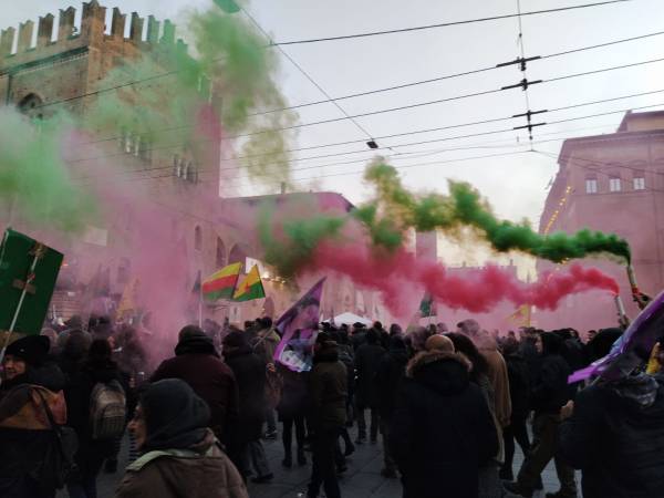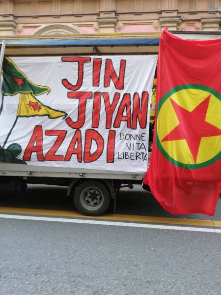 Девиз демонстрации, в которой приняли участие многие женщины, профсоюзные активисты и ассоциации гражданского общества, был таким: «Женщины, жизнь, свобода: мы вместе с революцией в Рожаве».
