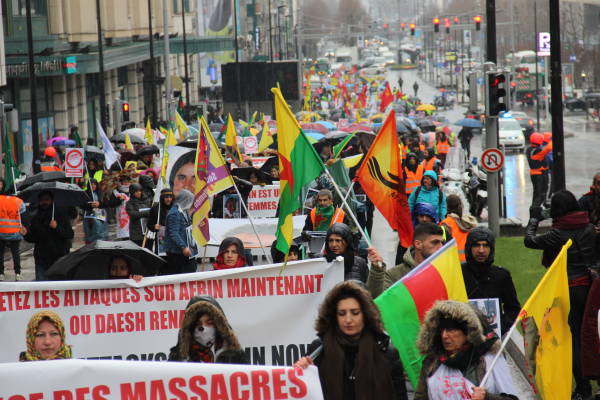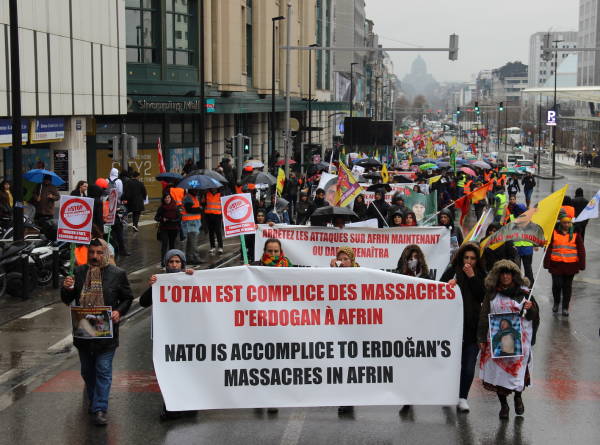 Во вторник «Платформа солидарности с Африном» организовала демонстрацию в Брюсселе в знак протеста против Турции и государств-членов НАТО, обвиняя их в поддержке вторжения турецких войск и их прокси-сил в кантон Африн.