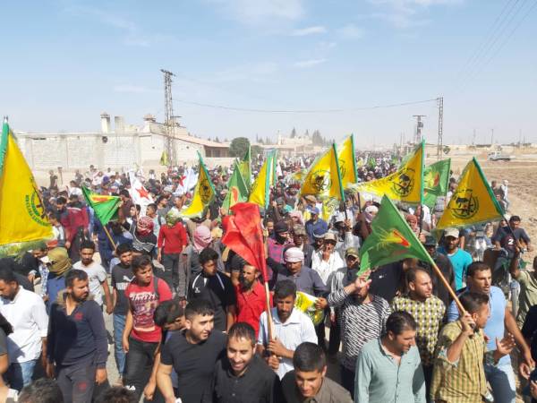 В Северной и Восточной Сирии в городе Серекания, который относится к кантону Хасаке, тысячи людей присоединились к маршу протеста в адрес турецкой угрозы вторжения.