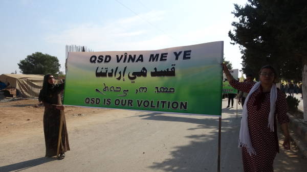 «Бойцы СДС – это наша сила, мы никогда не оставим нашу землю», – заявила Ханна Михамад, мать, потерявшая сына на войне.
