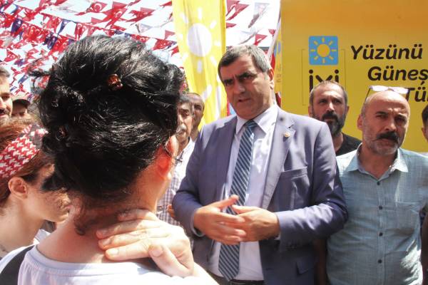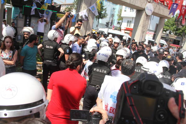 Представитель РНП Али Шекер прибыл в Бакыркёй, чтобы поддержать рабочих, и попытался поговорить с полицией об их решении разогнать сидячую забастовку.