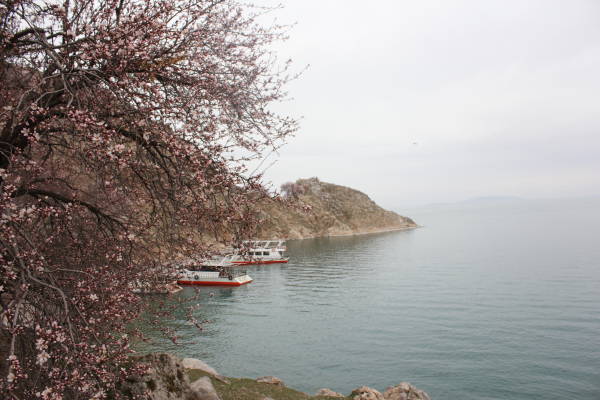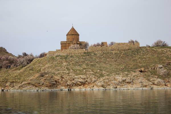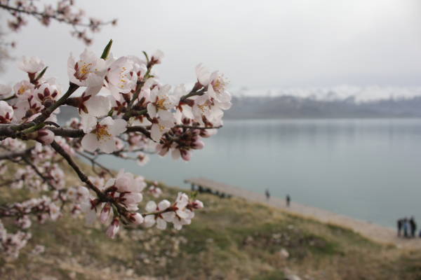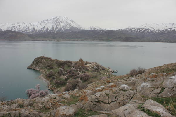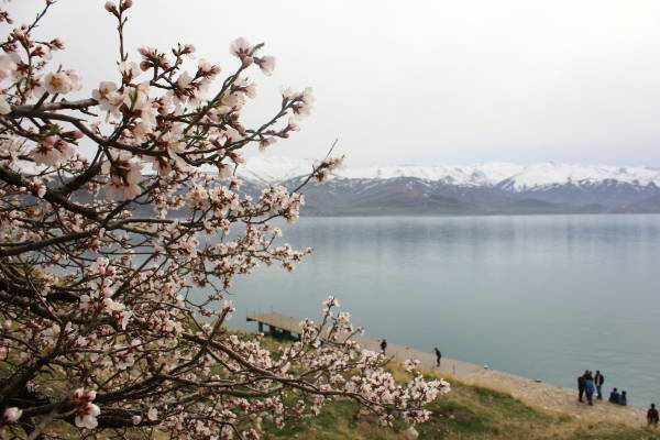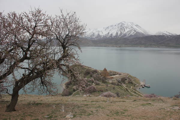 На острове Акдамар, расположенном на озере Ван, расцвели миндальные деревья. Зелень острова, синева воды и белизна горных вершин создали картину, полную очарования.