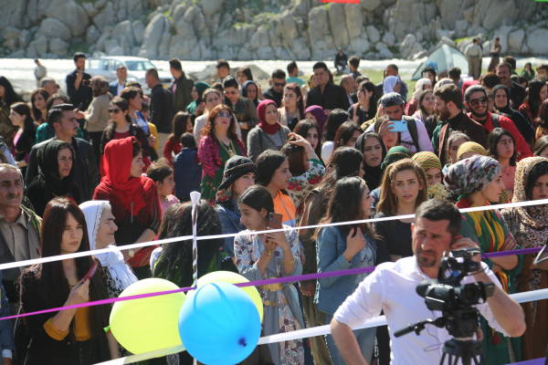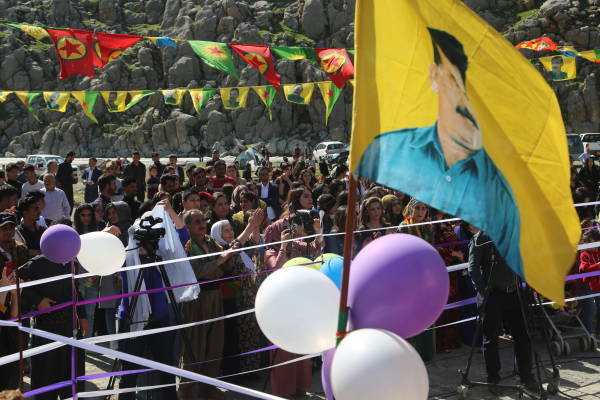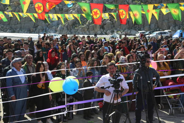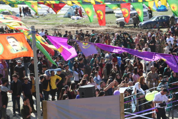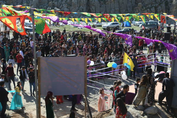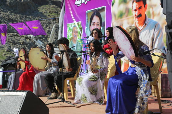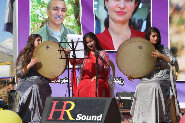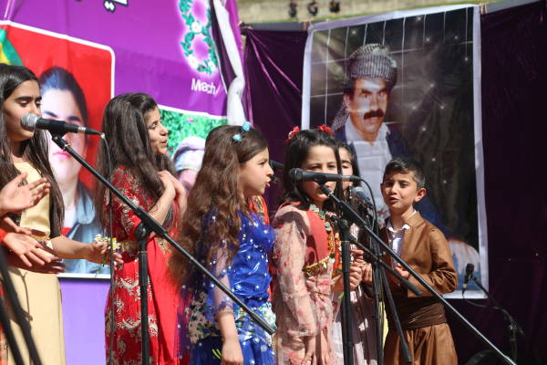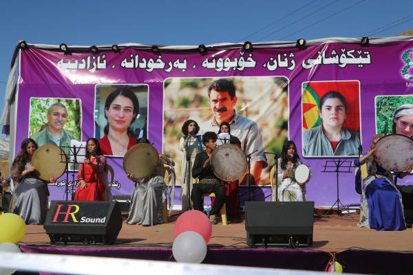 Сцена была украшена портретами курдского национального лидера Абдуллы Оджалана и героев, погибших в борьбе за свободу.