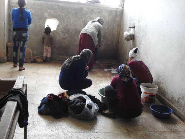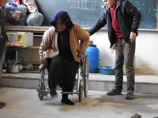 Во всех школах и мечетях кантона Шахба полно людей из Африна. Нескольким семьям приходится жить в одном классном кабинете в школе. Мустафа Курдо, который живет в школьном кабинете вместе с двумя другими семьями, рассказал, что он вывез его жену-инвалида из Африна в инвалидном кресле, и они шли несколько миль пешком. Семья перебралась из деревни Димилия в районе Мабета, а сейчас живут на соломенной циновке и одеяле в школьном кабинете в Ахразе. Мустафа сказал, что их ситуация не очень стабильна после вторжения турецких войск.