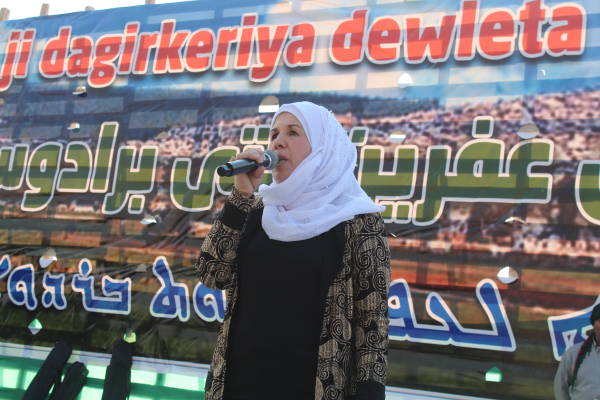 Администратор Конгресса «Стар» Семер Абдулла выступил на акции протеста и сказал, что нападения турецкого государства нацелены на само существование курдского народа, и призывал народ Курдистана противостоять вторжению Турции.
